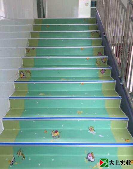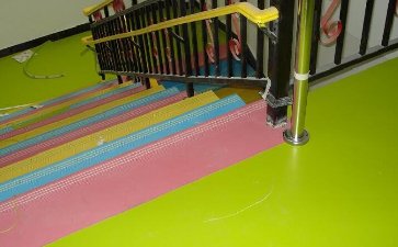PVC地板可以在幼兒園室內(nèi)任何一個地方使用,教室、房間、餐廳、衛(wèi)生間、走廊、臺階等。臺階PVC配上專用防滑條,對小朋友的安全起到很好的保護作用。