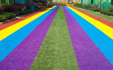 幼兒園人造草坪采用的是食品級別的原材料,無毒環保。一般選用30mm草高的C型休閑草,草絲柔順度非常好,很親膚不扎腳,對小朋友皮膚有很好的保護,不會擦傷皮膚。無任何橡膠顆粒的填充,避免小朋友在戶外玩耍時一時好奇將橡膠顆粒吃進嘴里。而彩色的圖案,也是幼兒園草坪的一個獨特優點,豐富多樣的卡通圖案、數字、字母、彩虹跑道為孩子營造一個多彩的戶外運動環境,讓孩子在柔軟舒適的草坪盡情玩耍。