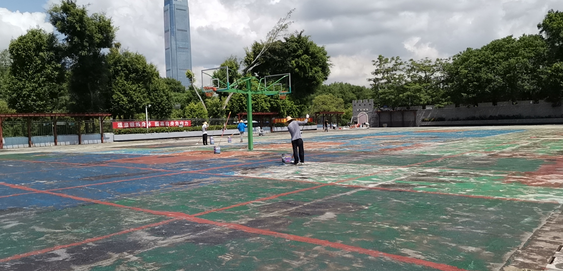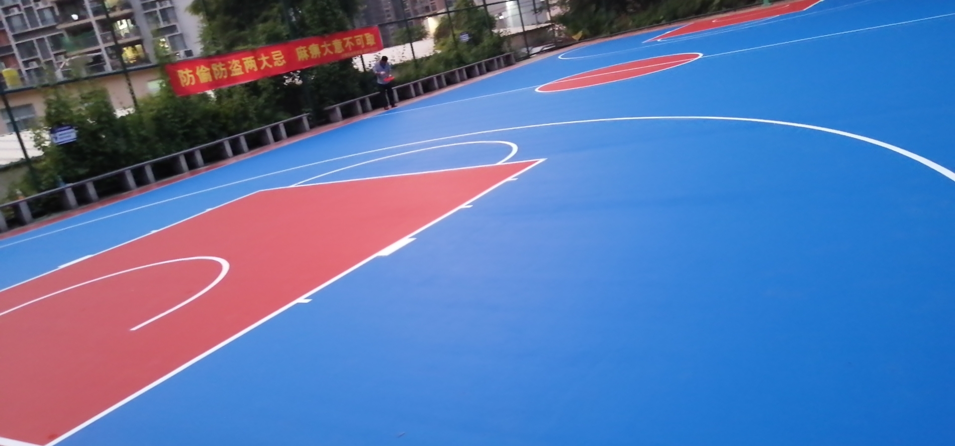 深圳華僑新村彈性丙烯酸籃球場施工