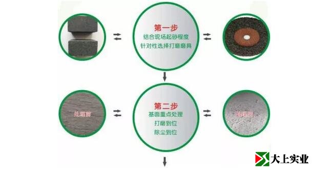 用金剛磨頭或磨石磨頭打磨表層至符合施工水性聚氨酯地坪層對(duì)基面的要求,方可按實(shí)際情況要求施工水性聚氨酯地坪