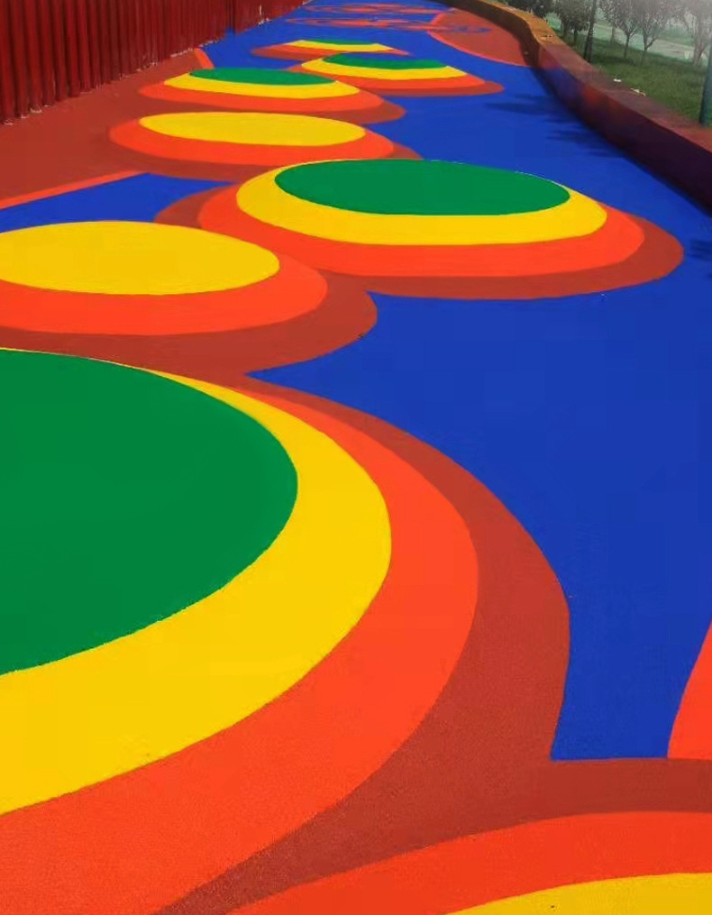室外幼兒園常用的塑料地板方法是使用EPDM顆粒鋪設,這種做法相對簡單,排水效果好,最重要的是使用顆粒鋪設,可以鋪設各種顏色和圖案,這是其他類型的塑料地有的。