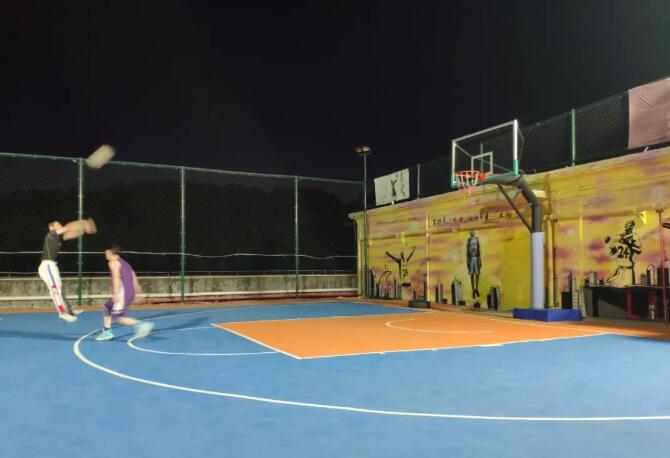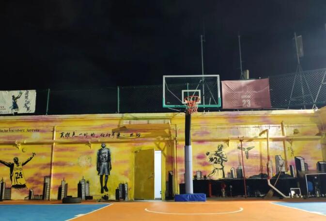 場地是水泥地,樓頂改造成的籃球場,有點類似于主題籃球場吧,處處是科比的涂鴉。人也不咋多,有一群小孩子在旁邊訓(xùn)練,就我們幾個大人。不好的地方就是廠旁總是飄來一陣陣下水道味,好臭的,所以我們就去另一個半場打球了哈哈